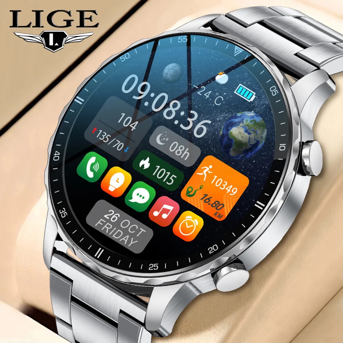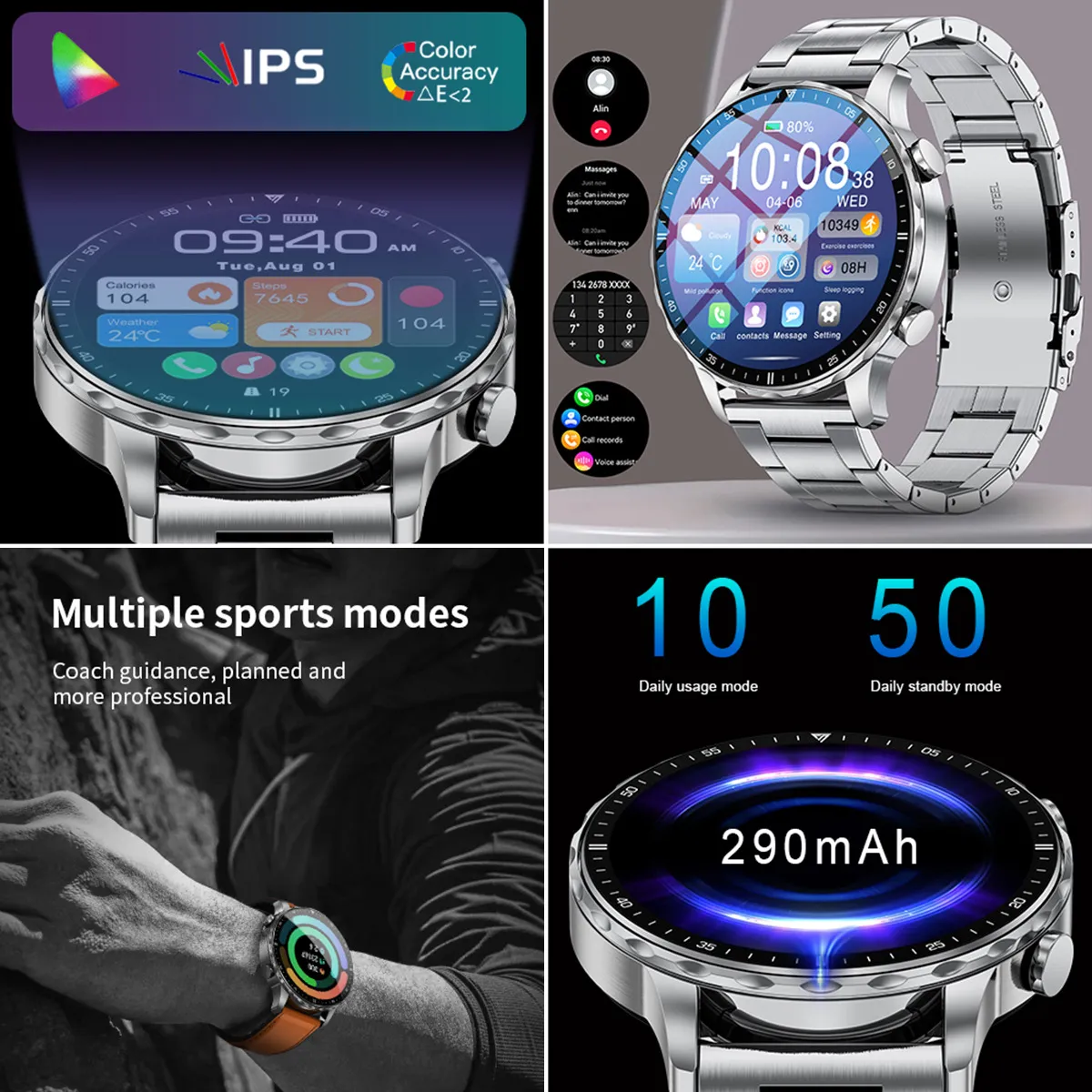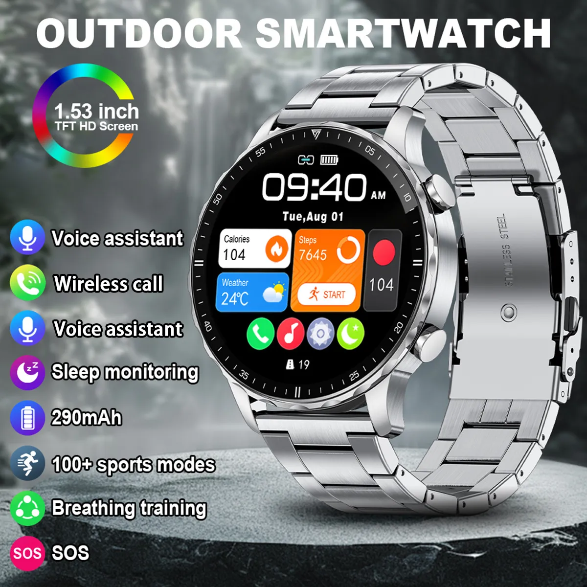 Specifications: Display Screen: 1.53 inch TFT high-definition, 360*360pixel Strap Size: 22mm*260mm CPU: Realtek 8763ewe Touch: Full screen touch, Key: one Button encoder Bluetooth: BLE5.2 Heart Rate Sensor: VC30F-S G-sensor: STK8321-W Speaker: A 0815 Waterproof Level: IP68 Standby Time: 50days Work Time: 7-10days Battery: 290mAh System Support: Androids 4.4 above and IOS 9.0 above, 5S above Functions: Heart rate monitoring, Bluetooth call, SpO2, BP, bright adjustment, Breathing exercise, Voice assistant, Raise the hand on the screen, SMS, QQ、WeChat、Facebook、Line、WhatsApp and other reminders, 100+ sports modes, Weather, Clock display, Alarm clock, SOS, Calculator, Female Menstrual Cycle, music player, Versatile dial, Dial wallpaper, Sedentary reminder, Do not disturb mode, Find the bracelet, Remote photography, Sleep monitoring, Step distance, Calorie. Features: |Reloj Inteligente Hombre|Watch Smart|Smartwatches| **Advanced Connectivity and Performance** The New Bluetooth Smart Watch is a cutting-edge accessory designed for the modern man. It boasts a high-definition 1.53-inch TFT display with a resolution of 360*360 pixels, providing crystal-clear visuals for all your notifications and apps. The watch's full-screen touch feature and one-button encoder offer a responsive and intuitive user interface, ensuring that you can navigate through your day with ease. The Realtek 8763ewe CPU and BLE5.2 Bluetooth connectivity ensure stable and quick pairing with your smartphone, while the IP68 waterproof level makes it suitable for various activities, from swimming to outdoor adventures. **Health and Fitness Companion** This smartwatch is more than just a timepiece; it's a health and fitness companion. Equipped with a VC30F-S heart rate sensor and a STK8321-W G-sensor, it accurately tracks your heart rate, blood pressure, and physical activities. The watch's 100+ sports modes cater to a wide range of activities, from yoga to cycling, ensuring that you can monitor your progress and stay motivated. The sleep monitoring feature helps you understand your sleep patterns, while the sedentary reminder encourages you to take breaks and stay active throughout the day. **Stay Connected and Organized** Stay connected and organized with this smartwatch's comprehensive features. It supports various languages, including Chinese, English, Korean, Japanese, German, Spanish, French, Italian, Portuguese, Polish, Russian, Indonesian, Turkish, Czech, Traditional Chinese, Vietnamese, Thai, and more. The watch's versatile dial and wallpaper options allow you to personalize your device, while the weather feature keeps you informed of the current conditions. The watch also supports multiple push languages, ensuring that you receive notifications in your preferred language. Whether you're at work or on the go, this smartwatch is designed to keep you informed and connected.