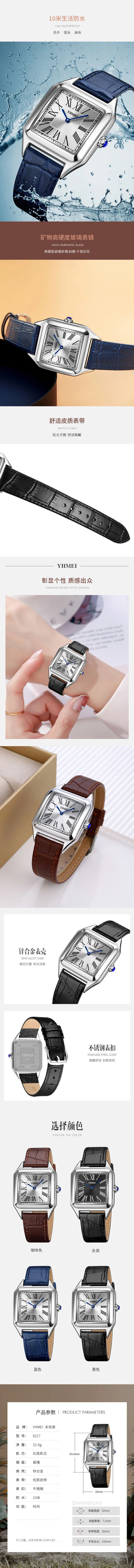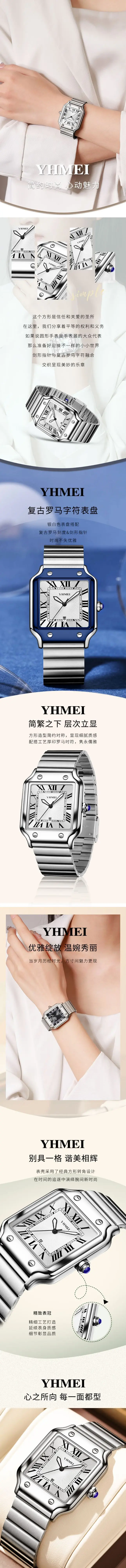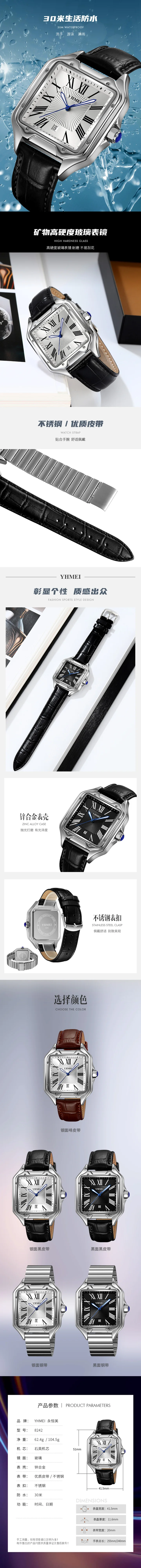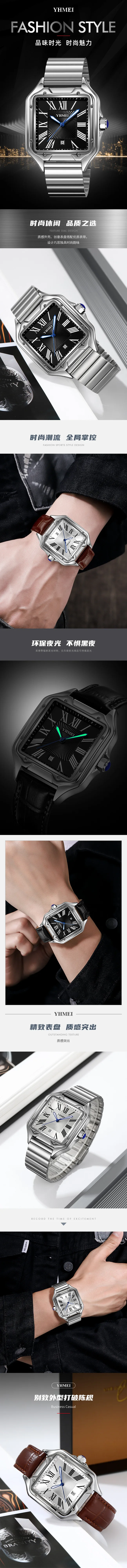 YHMEI 8239 Luxury Men’s Waterproof Quartz square Watch